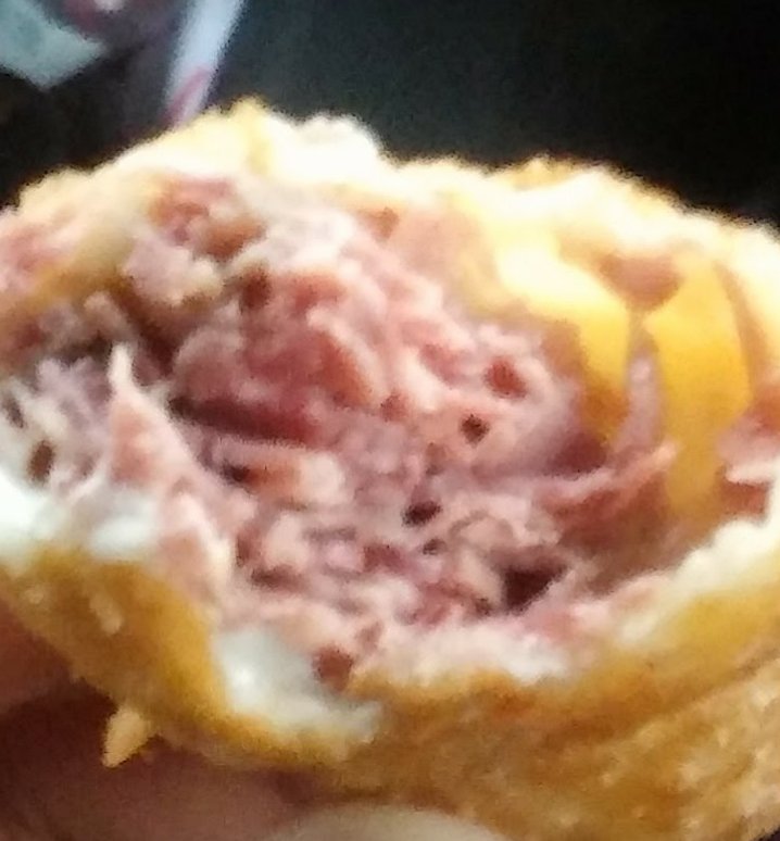 Filled with ham, hash browns, onions and American cheese.